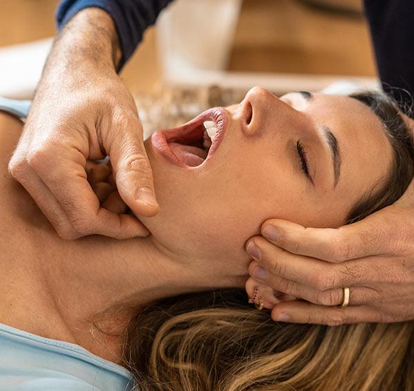 - rozluźnienie głęboko położonych mięśni żucia, skroniowych i skrzydłowych,